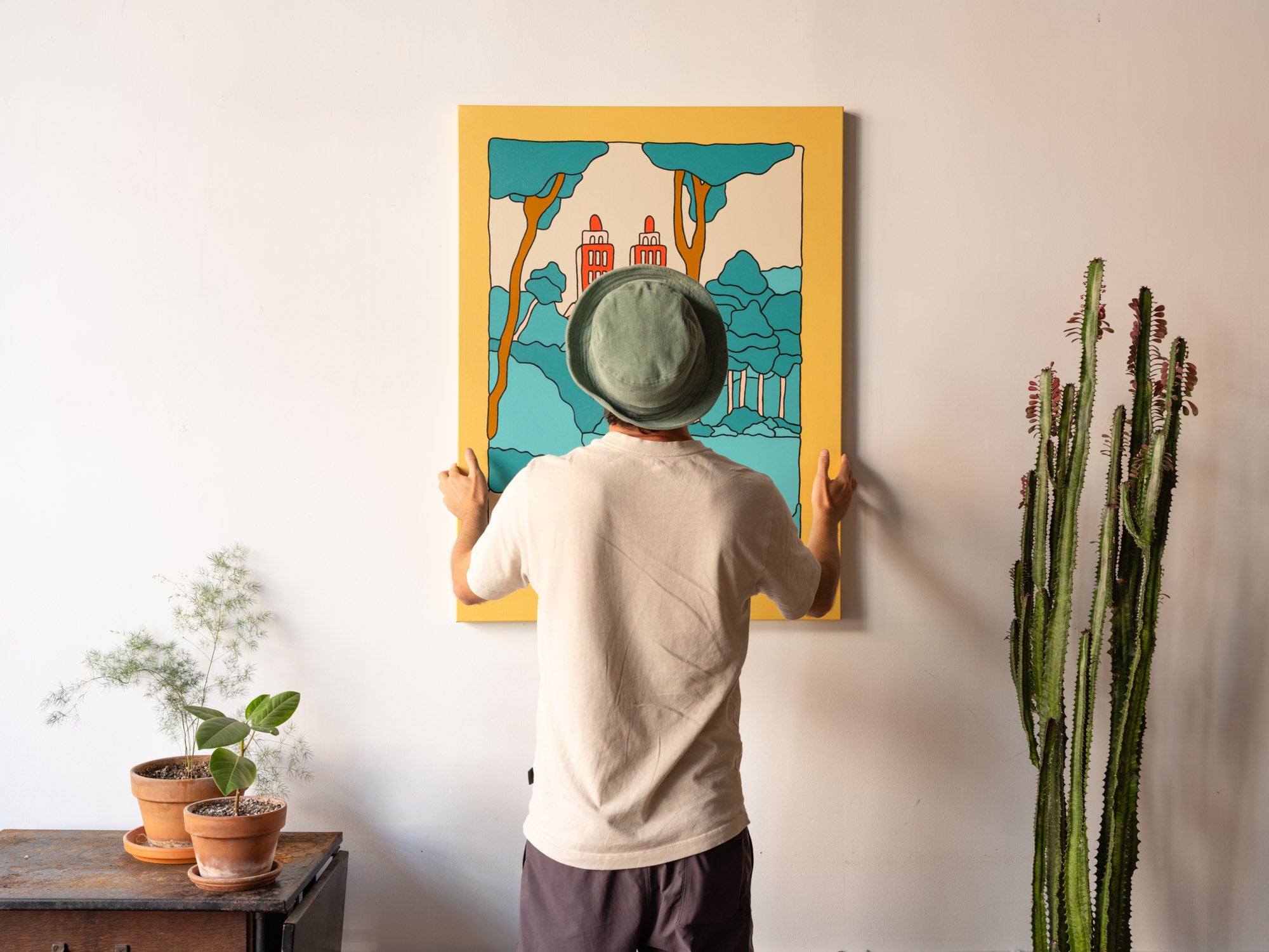 Paintings are carefully wrapped in bubblewrap, packaged in a cardboard box following industry standards.
